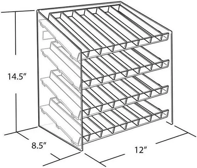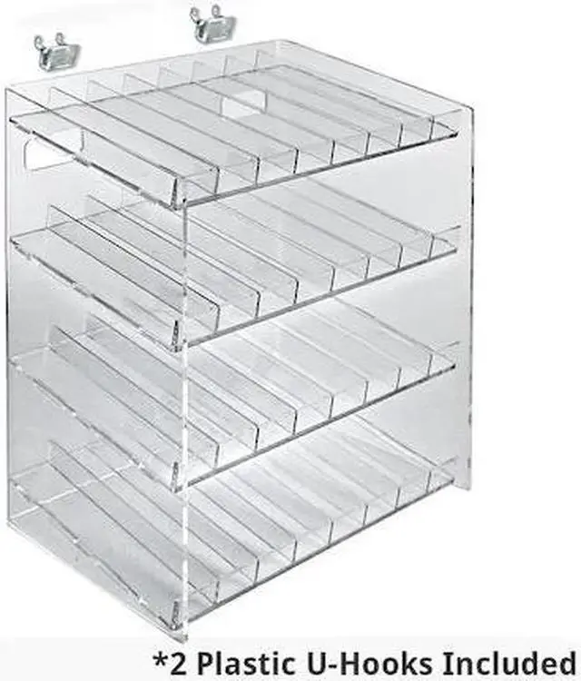 Use these attractive displays on pegboard, slatwall, or countertop to present an assortment of products in a neat and organized arrangement. Choose from two to five tiers, available in four different compartment sizes. Plastic U-Hooks included for use on pegboard and slatwall.