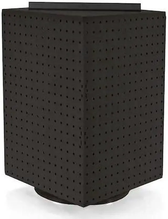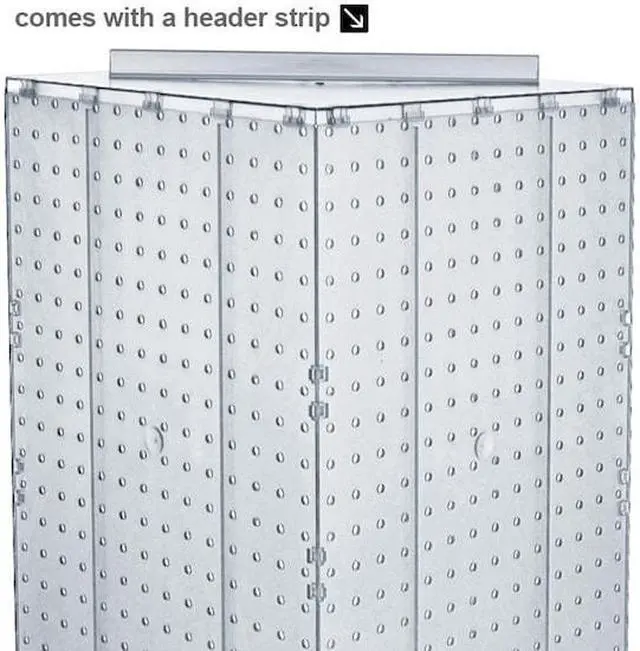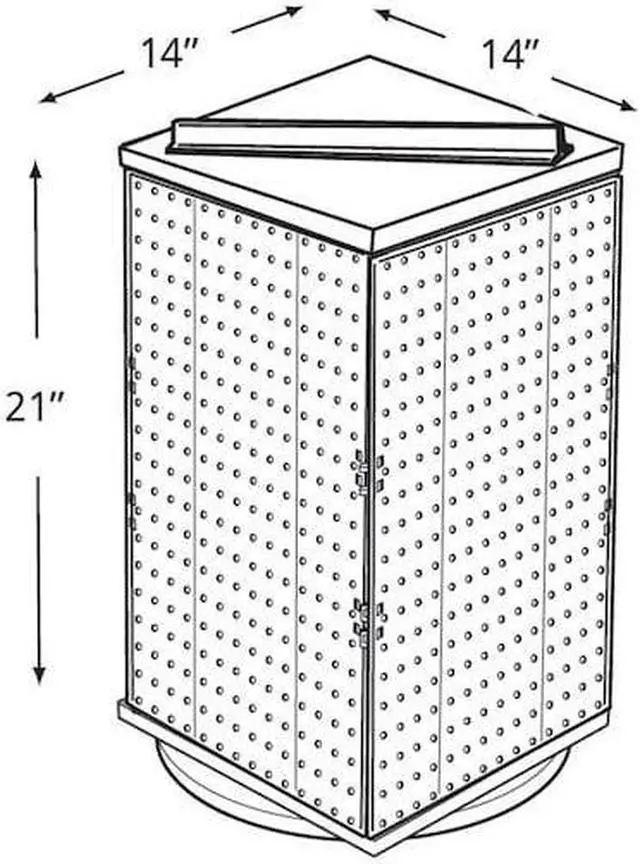 This 4-sided pegboard interlocking counter unit measures 14" W x 14" D x 20" H and sits on a revolving plastic base. Easy to assemble (no tools required). Sign holder and hooks sold separately.