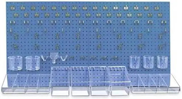 Our pegboard organizer kits are perfect for garages, craft rooms, and dorm rooms. Pegboard organizer kit includes 2 pcs. 24" x 24", 2 pcs. divider bin trays, 6 pcs. dividers for divider bin trays, 3 pcs. 3" dia. cups, 2 pcs. 4" dia. cups, 4 pcs. small display bucket, 1pc. open eyeglass holder, 10 pcs. metal j-hooks, 20 pcs. metal u-hooks, 30 pcs. metal prong hooks, 8 pcs. 2" galvanized metal hooks, 8 pcs.