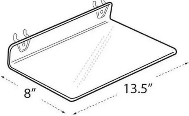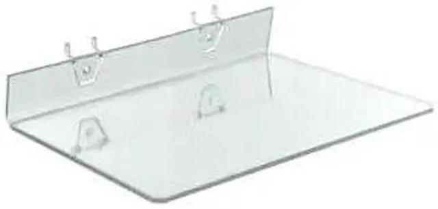 This is a Clear Acrylic Shelf that is. 1875" thick. Two plastic hooks are attached to unit for easy display onto any standard pegboard or slatwall system.