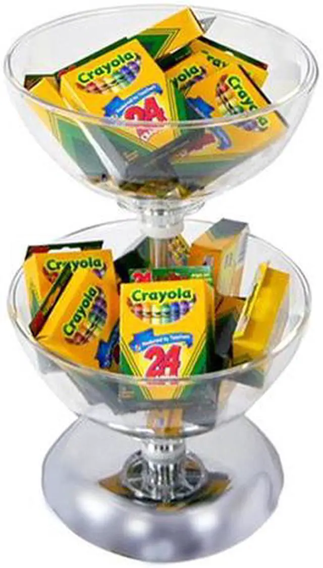 Our tiered bowl counter displays will help to turn your counter into a beautifully organized space to display impulse buy items. Highly durable and weighed down with a high-end 8" chrome base. Dividers can be added to display a variety of different products. Dividers sold separately. Our crystal clear bowl displays are also designed to display your graphics with the additional purchase of our T-Sign Holders.