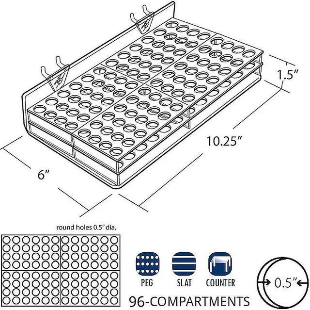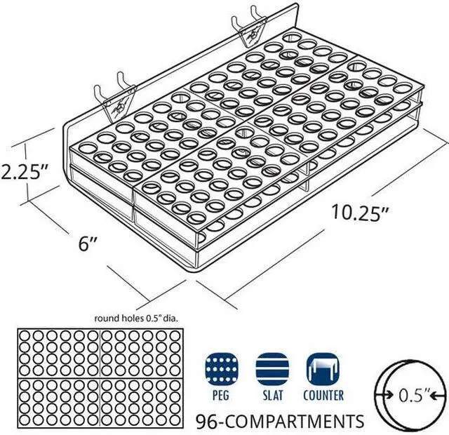 AZAR DISPLAYS 225596 96-Compartment Tray - round Slot 0.5", PK2