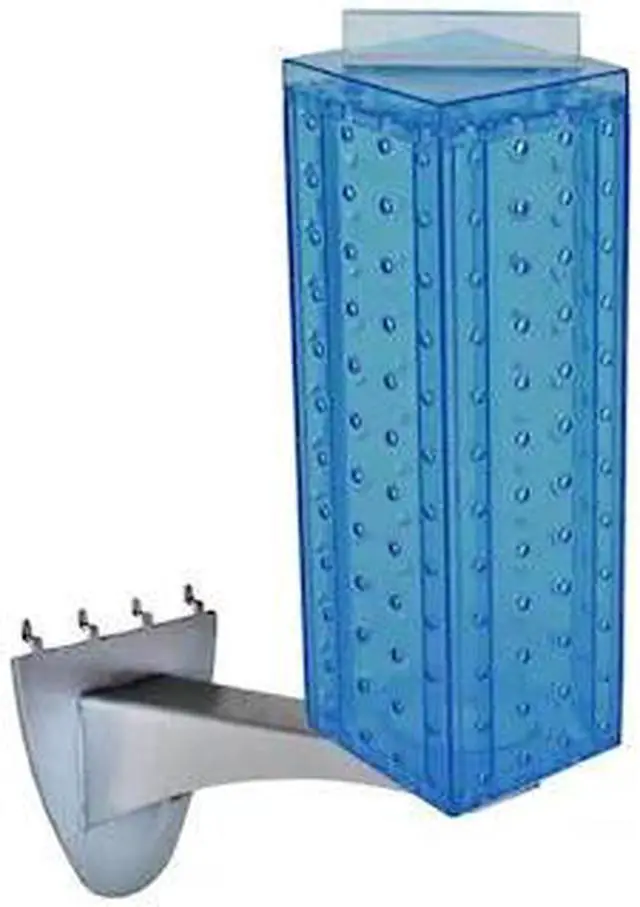 This kit includes an interlocking pegboard tower measuring 4"W x 4"D x 12"H and rotates on an 8" metal extension rod. Use on an existing pegboard/slatwall display. Sign holder and hooks sold separately.