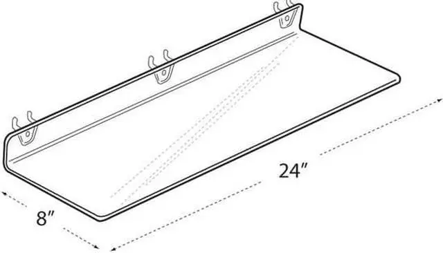 This is a Clear Acrylic Shelf that is. 1875" thick. Two plastic hooks are attached to unit for easy display onto any standard pegboard or slatwall system.