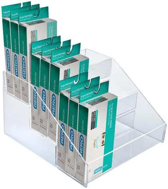 Azar's clear step displays allow you to display an assortment of products in a neat and organized arrangement. These displays provide easy access to products while maximizing counter space.