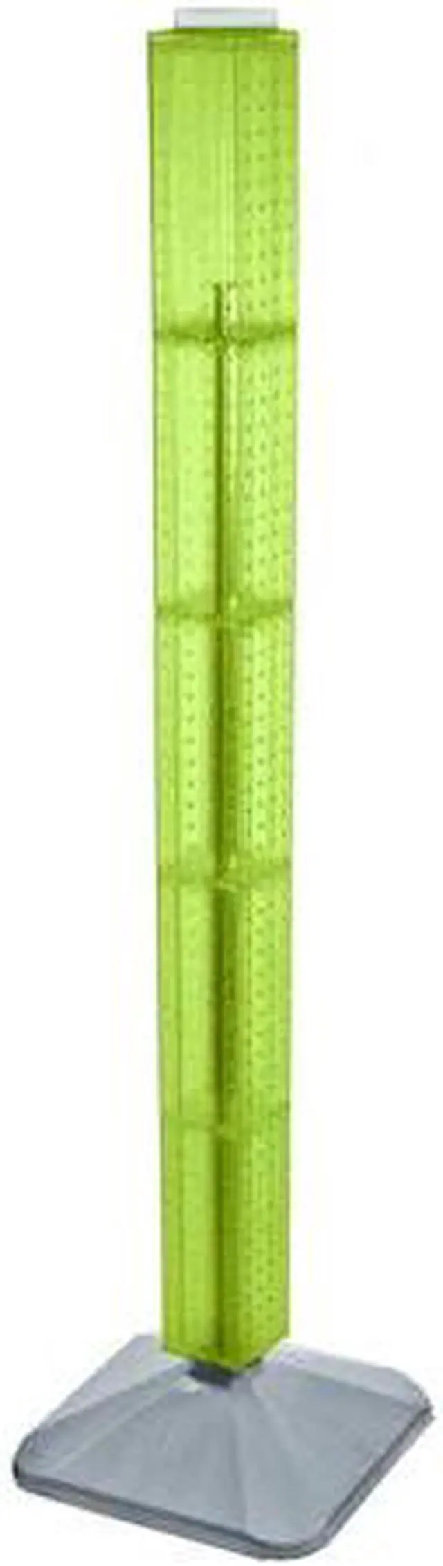 This 4-sided pegboard interlocking floor unit measures 4" W x 4" D x 60" H and revolves on a weighted silver plastic base. Easy to assemble (no tools required). Sign holder and hooks sold separately.