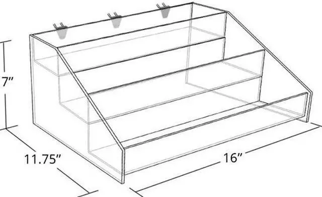 Azar's step displays are great for displaying an array of products - nail polish, cell phone accessories, cards, boxed products, cosmetic creams, vapor products and so much more. Includes three plastic hooks for mounting to pegboard or slatwall.