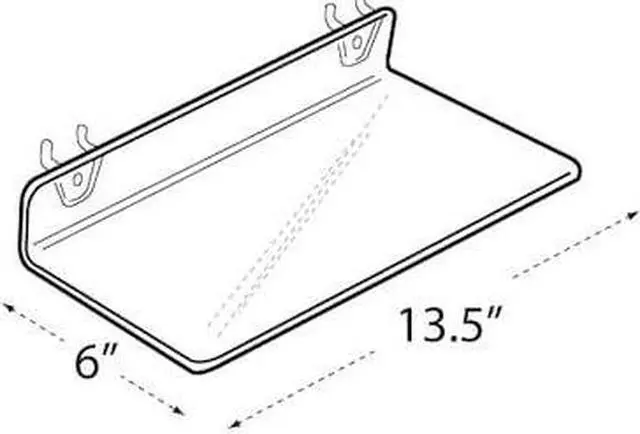This is a Clear Acrylic Shelf that is. 1875" thick. Two plastic hooks are attached to unit for easy display onto any standard pegboard or slatwall system.