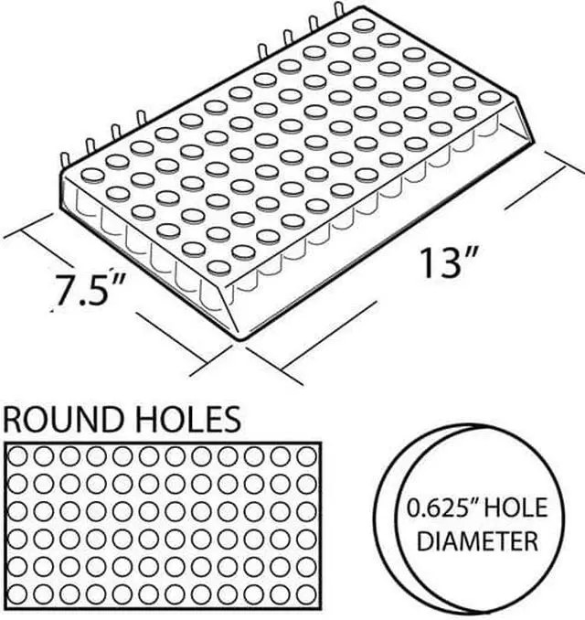 AZAR DISPLAYS 225524 72 Round Slot Lipstick and Mascara Tray for Pegboard, PK2