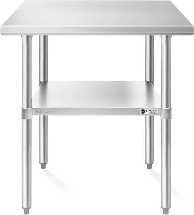Transform your commercial kitchen with KUTLERs stainless steel prep table. This heavy-duty table is constructed with an 18-gauge #430 SS table top ensuring durability and resilience. It is capable of withstanding rigorous daily use. The straight edges not only enhance the tables' aesthetic appeal but also contribute to a seamless, easy-to-clean surface that resists stains and corrosion, maintaining its pristine appearance even after prolonged use.