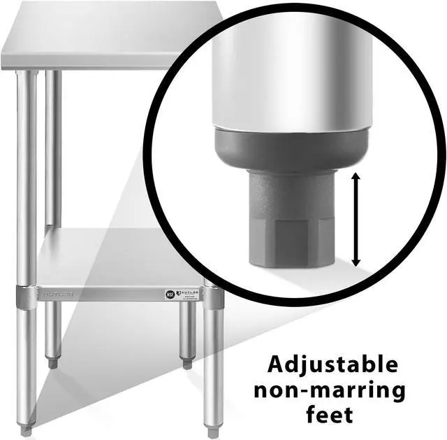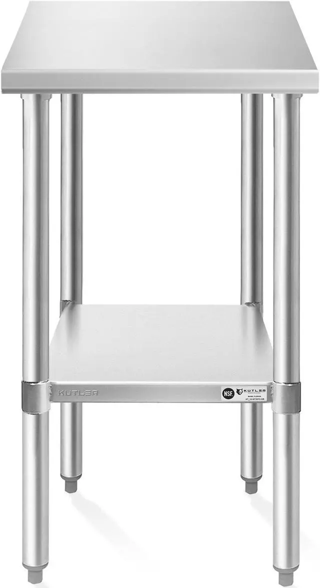 Transform your commercial kitchen with KUTLERs stainless steel prep table. This heavy-duty table is constructed with an 18-gauge #430 SS table top ensuring durability and resilience. It is capable of withstanding rigorous daily use. The straight edges not only enhance the tables' aesthetic appeal but also contribute to a seamless, easy-to-clean surface that resists stains and corrosion, maintaining its pristine appearance even after prolonged use.