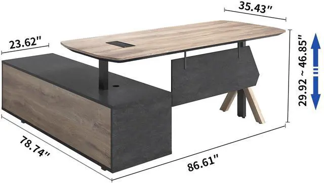 86.61 -Inch Hight Adjustable Executive Desk with Drawers, Large L Shape Desk with Cabinet Storage, Business Executive Office Desk with Shelves, Modern Business Furniture