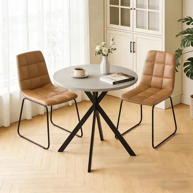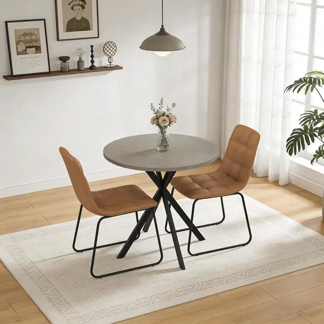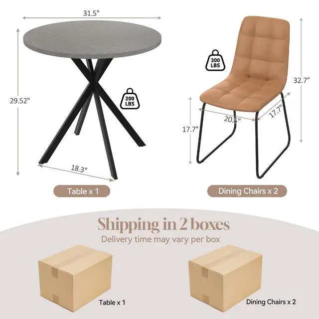 31.5" Round Dining Table Chairs Set for 2, Small Dining Table Chairs Set Space-Saving, Small Dinette Sets for 2 for Kitchen Dining Room Apartment(Gray Table +Brown Chairs)