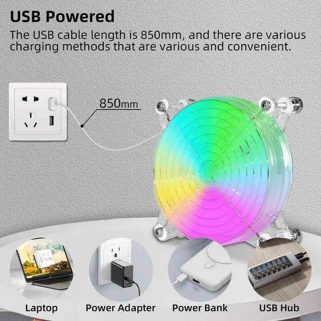 Vibrant RGB Lighting Enjoy a dazzling RGB light effect that enhances your setups look while keeping devices like PS5, Xbox, and routers cool with this pc fan.