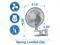 The spring-loaded clip that makes the fan easy to attach to a shelf, desk, or anywhere in a workshop or office cubicle. The durable clip holds tightly without marking surfaces.
