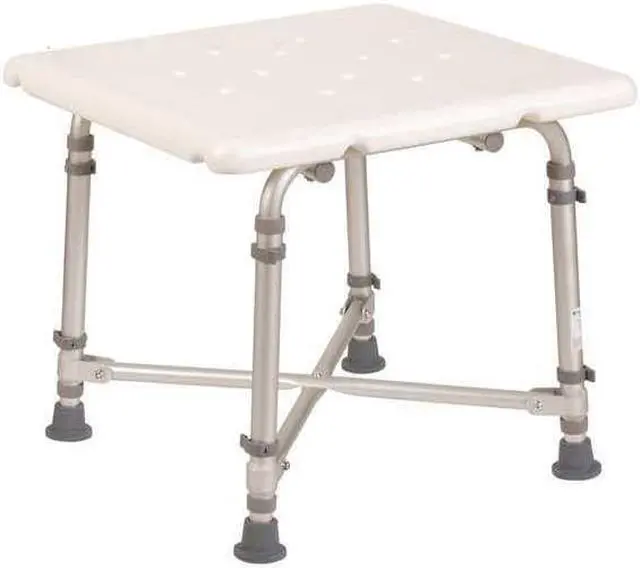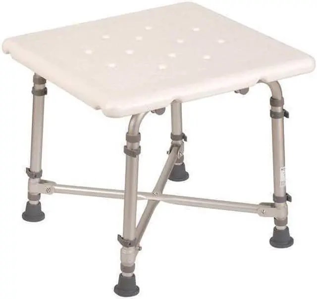 Tub and Shower Seat, Smooth, Aluminum, Plastic, Textured Finish, Color White, Aluminum, Plastic Frame, Length 21 in, Width 21 in, Height 23 in, Depth 20 in, Dia. 1 in, Weight Capacity 500 lb