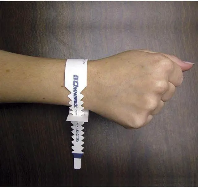 California Proposition 65: This product contains a chemical known to the State of California to cause birth defects or other reproductive harm. Omnimed static I. D. Interim identification bracelets are composed of a high-density polyethylene material known as Tyvek. Designed to resist tearing and smearing even when wet, this material easily accepts pen, marker, Type or embossing. Each bracelet has an area for identification and a unique adjustable ratchet strip closure. Packaged 250 in a convenient dispenser box, these bracelets are an inexpensive and easy to use tool for patient identification.