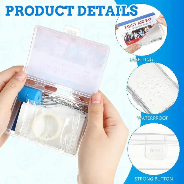 Quality Material: our first aid kit is made of durable pp material and the transparent design makes it easy to see the contents inside; Featuring a roll of non-woven tape and 10 adhesive bandages, our mini first aid kit aids in securely attaching bandages to your skin preventing further deterioration of the wound; These accessory items make the injury well-sealed to prevent infection