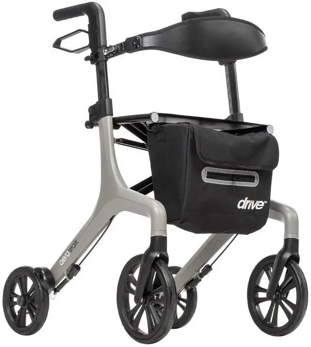 ADJUSTABLE COMFORT The AeroWalks unique backrest is height-adjustable and extends for premium lumbar support. The lightweight adult walkers ergonomic handles are also height-adjustable for comfortable use by users of different heights.