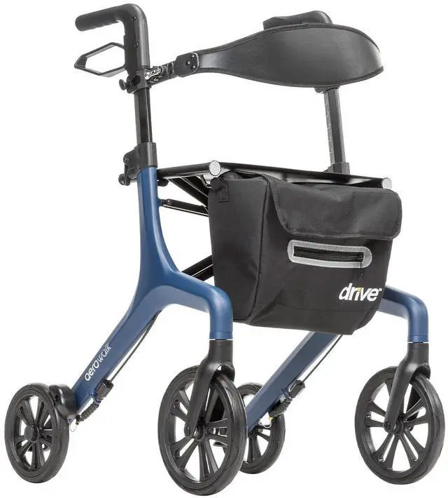 ADJUSTABLE COMFORT The AeroWalks unique backrest is height-adjustable and extends for premium lumbar support. The lightweight adult walkers ergonomic handles are also height-adjustable for comfortable use by users of different heights.