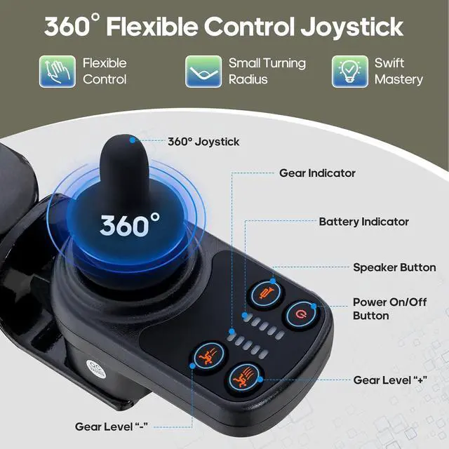 Enhanced Safety Motorized Wheelchair:The lightweight folding electric wheelchair incorporates numerous safety functionalities,including electromagnetic brakes,weight balance design,and professional-grade shock absorbers to ensure excellent stability and reliability.The electromagnetic brakes react swiftly and are complemented by new anti-tip rear wheels for added security.Automatic tilt prevention engages when hands are removed from the control lever of motorized wheelchair