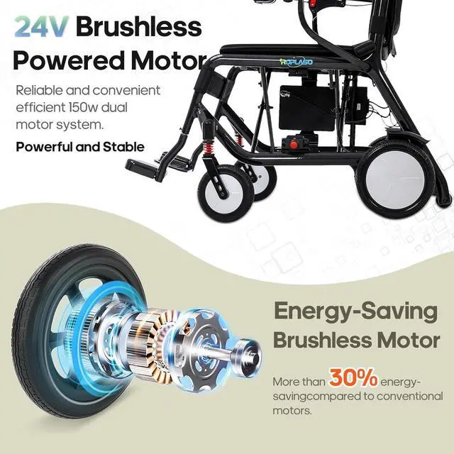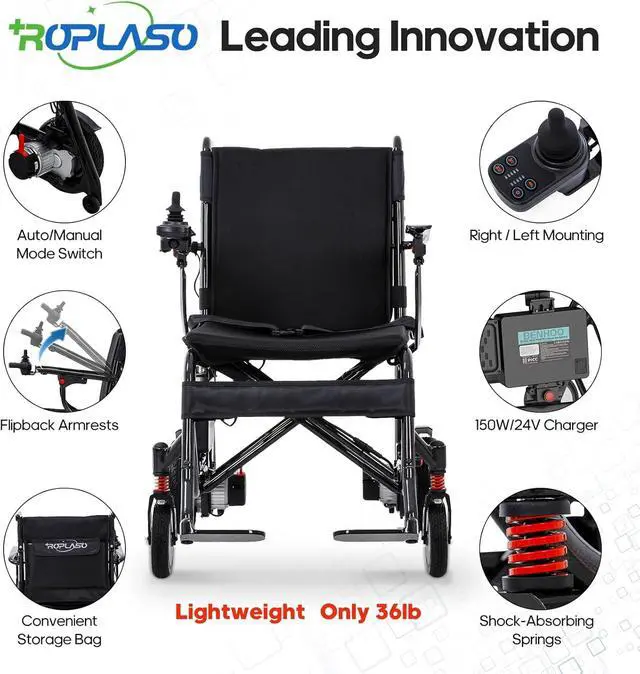 Powerful Performance: ROPLASO carbon fiber electric wheelchair features a powerful electric motor for climbing slopes up to 9 degrees and features brushless motors. Brushless motors offer high efficiency,low noise,long lifespan,and precise control,enhancing your overall experience.With robust power and magnesium alloy hub tires,you can navigate effortlessly across various terrains,tackling slopes and uneven surfaces with ease.Additionally,the responsive 360-degree joystick allows easy maneuvering and braking even in confined spaces