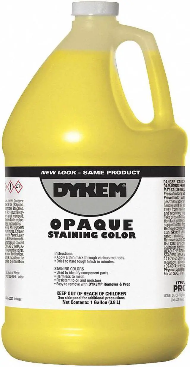 Staining Color, Container Size 1 gal, Can, Liquid, Yellow, Application Permanent Identification on a Variety of Component Parts, Assemblies, Finished Goods, Inventory, Tools, Work in Progress, Features Fast Drying, For Light and Dark Tinted Metals, Resists Chipping, Flaking or Scaling, Resists Cracking, Flash Point 24 Degrees F, Fluid Clarity Opaque, Form Liquid. This item has been restricted from sale in the following state (s): []