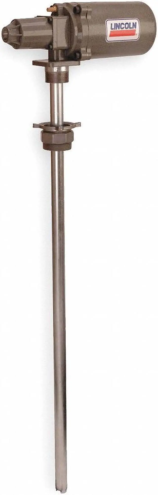 Air Operated Drum Pump, Pump Package Type Basic Pump without Discharge Hose, Air Inlet Size 1/4 in FNPT, Air Outlet Size 1/8 in, For Container Size 275 gal, For Container Type Tote, Air Consumption 7 cfm, Max. Flow Rate 6 gpm, Max. Oil Flow 6 gpm, Discharge Connection Type FNPT, Discharge Tube Outlet ID 1/2 in, Discharge Tube Outlet OD 13/16 in, Min. Air Pressure 20 psi, Max. Air Pressure 120 psi, Ratio