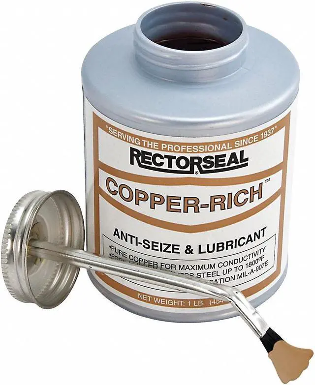 General Purpose Anti-Seize, 8 oz, Brush-Top Can, Copper, Paste, Copper-Rich, -65 Degrees F, 1, 800 Degrees F, Rectorseal, Copper, Flammable