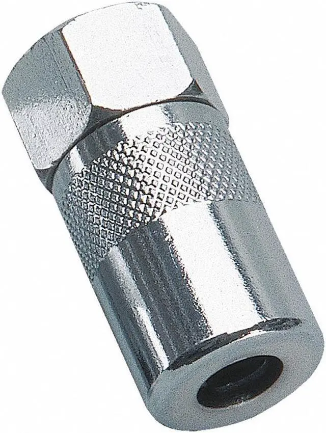 California Proposition 65: This product contains a chemical known to the State of California to cause birth defects or other reproductive harm. Grease Coupler, 21/32 In., Working Pressure (PSI) 10000, Max. Pressure (PSI) 10000, Min. Burst Pressure (PSI) 13000, Inlet 1/8 In. NPT (F), Outlet 3 Jaw, Fitting End (In. ) 1/8 NPT (F), Features Hardened Coupler Body with Double Wall Thickness withstands High Pressure without Deformation, Fully Hardened Spring Steel Jaws, Hexagonal Nut For Easy Tightening, 3 Jaw Construction, with Ball Check, For Use With Hand/air Grease Guns. This item has been restricted from sale in the following state (s): []