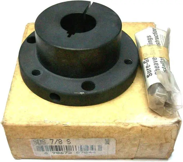 Quick Detachable Bushing, Bushing Type Quick Detachable, Bore Bushing Series SDS, Bore Diameter 7/8 in, Length 1.313 in, Bolt Circle Diameter 2.69 in, Bolt Size 1/4 In. -20 x 1-3/8 in, System of Measurement Inch, Bushing Diameter 2.188 in, Flange Type Split, Flange Width 7/16 in, For Shaft Type Keyed, Includes (3) Cap Screws, Keyway Height 3/32 in, Keyway Width 3/16 in, Length Less Flange 0.875 in, Material Steel, Overall Diameter 3.188 in, SAE Grade 5, Taper 3/4 in Per ft.
