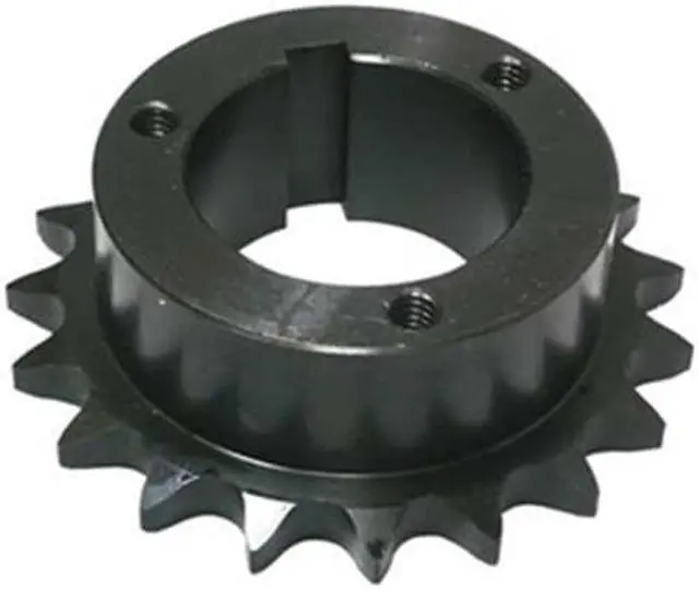 Sprocket, For Bushing Size H1, For Bushing Type Split Taper, For Chain Pitch 1/2 in, Material Steel, Number of Teeth 18, Outside Diameter 3.136 in, Pitch Diameter 2.879 in, Chain Number 40, For Number of Strands Single, Finish Black Oxide, Hub Diameter 2 1/2 in, Hub Projection 0.591 in, Hub Type One Side, Length through Bore 7/8 in, Material Grade 1045, Resistance Properties Corrosion Resistant, Teeth Heat Treatment Hardened Teeth, Tooth Width 0.284 in, Width with Bushing 1.315 in. This item has been restricted from sale in the following state (s): []