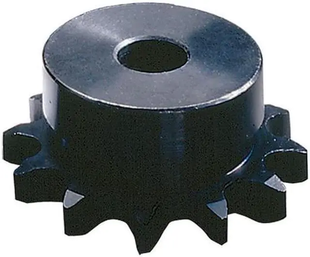 Sprocket, Bore Diameter 5/8 in, For Chain Pitch 1/2 in, For Number of Strands Single, Hub Type One Side, Material Steel, Maximum Bore Diameter 1 3/4 in, Number of Teeth 19, Outside Diameter 3.3 in, Pitch Diameter 3.038 in, Bore Type Plain, Chain Number 40, Finish Black Oxide, For Pitch Type Single Pitch, Hub Diameter 2 1/2 in, Hub Projection 0.716 in, Includes Set Screws, Keyway Yes, Keyway Depth 3/32 in, Keyway Width 3/16 in, Length through Bore 1 in, Material Grade 1045.