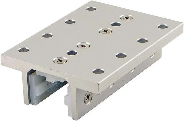 Linear Bearing, Standard Linear, Overall Height 1 7/32 in, Overall Length 4 in, Overall Width 2 15/16 in, Housing Material Aluminum, Mounting Hole Diameter 17/64 in, Anodized, Silver, System of Measurement Inch, 10 Series, Double Flanged, For Number of Slots 3, Standard, Flange Thickness 5/16 in, Pad Material UHMW Plastic, Compatible Brand and Series 10 Series. This item has been restricted from sale in the following state (s): []