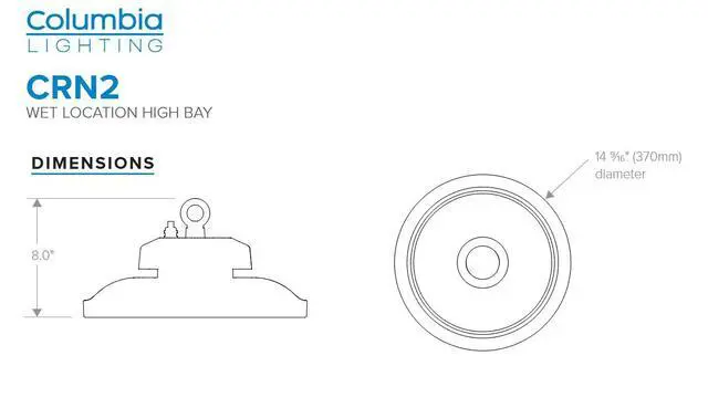 Hubbell Columbia Lighting CRN2-40HM-EDHV-FP Wet Location High Bay, 270 watt, 38000 lumen, 4000K Color Temp, Industrial Voltage 347-480V, Frosted Polycarbonate Lens, 0-10V Dimming