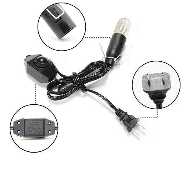 SPECIFICATIONS - 6ft cord with dimmer switch, 110V input, standard E12 socket. Butterfly clip compatible with various salt lamps.