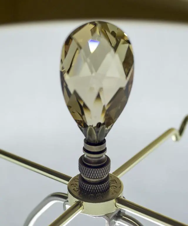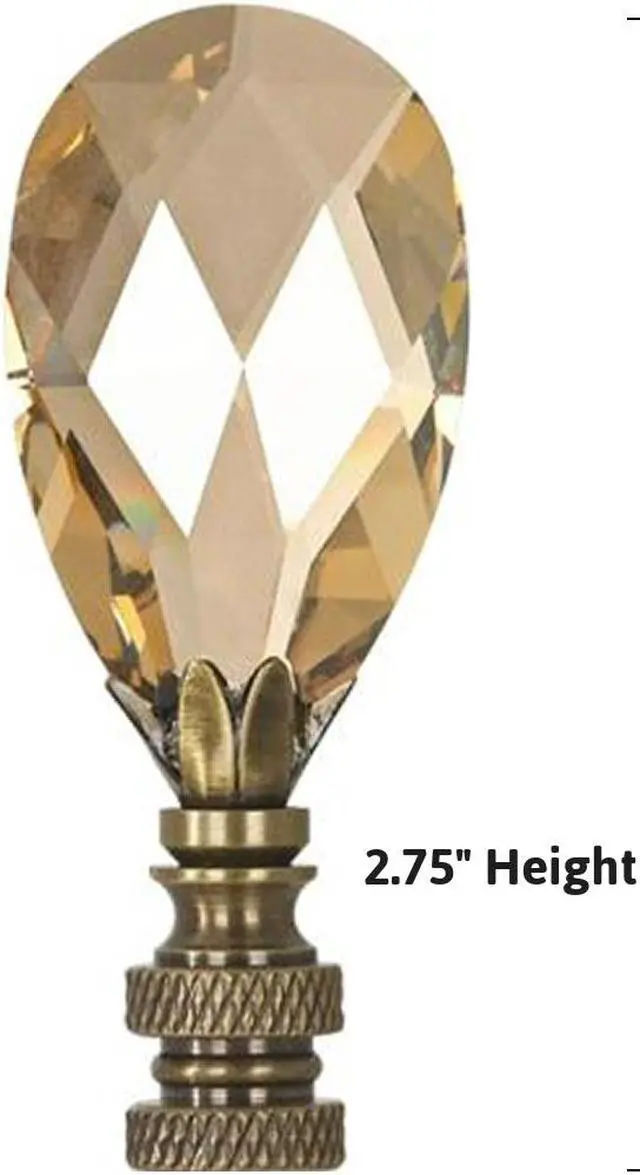A new lamp finial is the perfect way to complete your new or favorite lamp. Quality finial that is sure to dress up your tired lamp. Finials have a standard 1/4"-27 thread, which will fit the harp on almost every lamp. (This means the opening is 1/4" wide and there are 27 threads per inch.) 95% of all lamp harps will fit this finial. Finial measures 2.5" Height and 1.2" width. Material: Genuine Stephanov Crystal with Antique Brass Base.