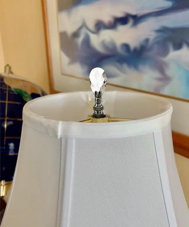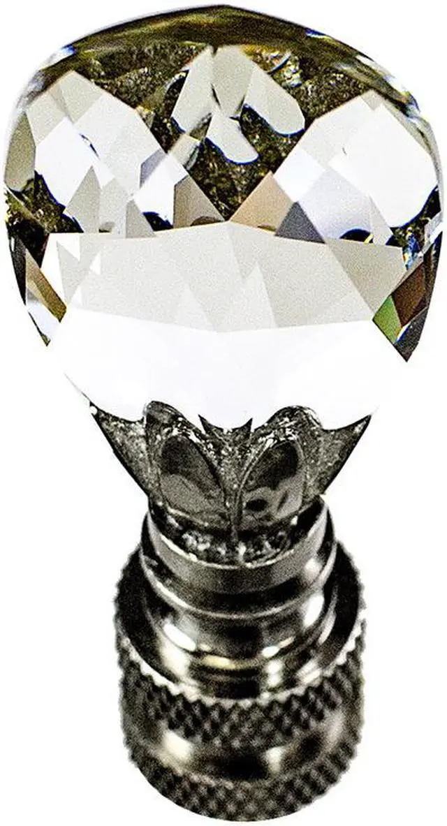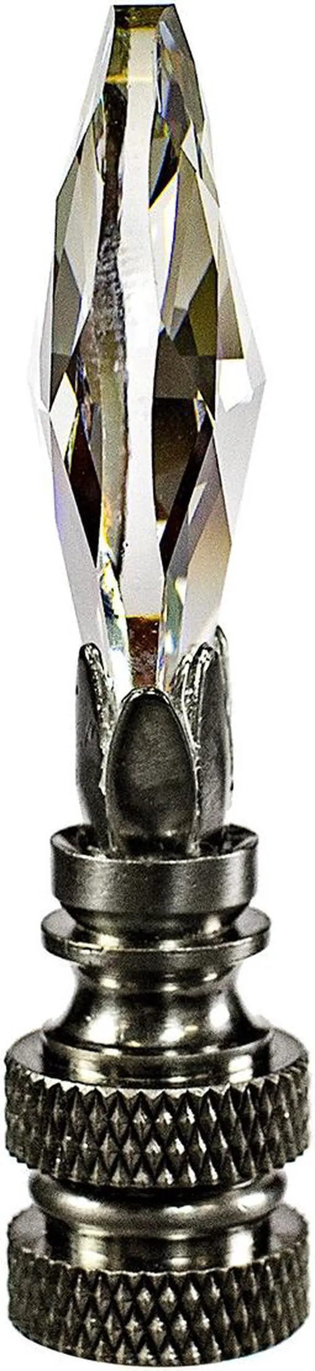 A new lamp finial is the perfect way to complete your new or favorite lamp. Quality finial that is sure to dress up your tired lamp. Finials have a standard 1/4"-27 thread, which will fit the harp on almost every lamp. (This means the opening is 1/4" wide and there are 27 threads per inch.) 95% of all lamp harps will fit this finial. Finial measures 2.5" Height and 1" width. Material: Genuine Stephanov Crystal with Brushed Nickel Base.