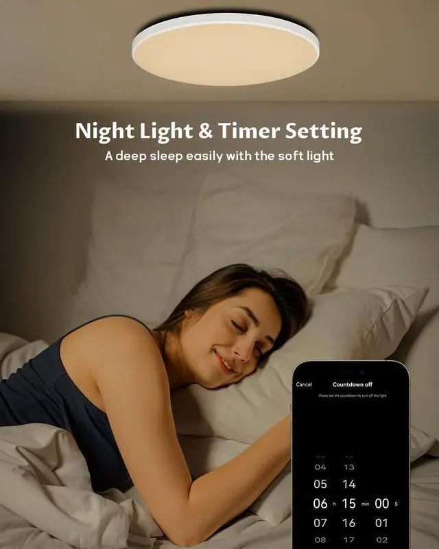 Music Mode:Transform your space with vibrant RGB lighting featuring 12 Recommended scene modes. Meanwhile, LED ceiling light support customising your own lighting scenes to perfectly match your mood and style.