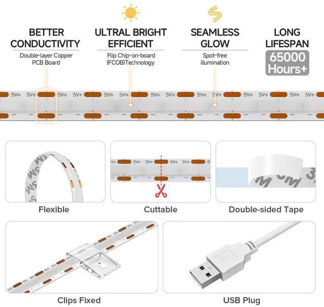 | LED Type | FCOB Flip Chip On Board USB Red LED Strip |