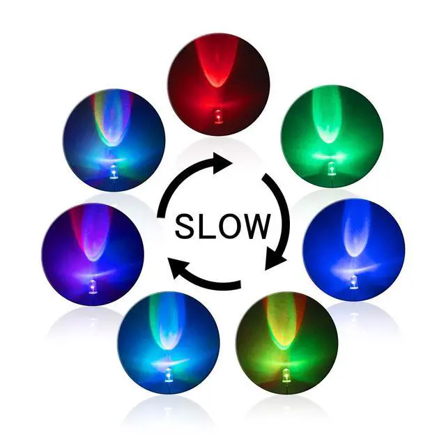 100pcs 5mm RGB Multicolor Slow Flashing LED Diode, Multi-Color Blinking Changing Light Emitting Diodes, 2 Pins Clear Round Lens Diffused Flicker Electronic Components Circuit Lights Kit
