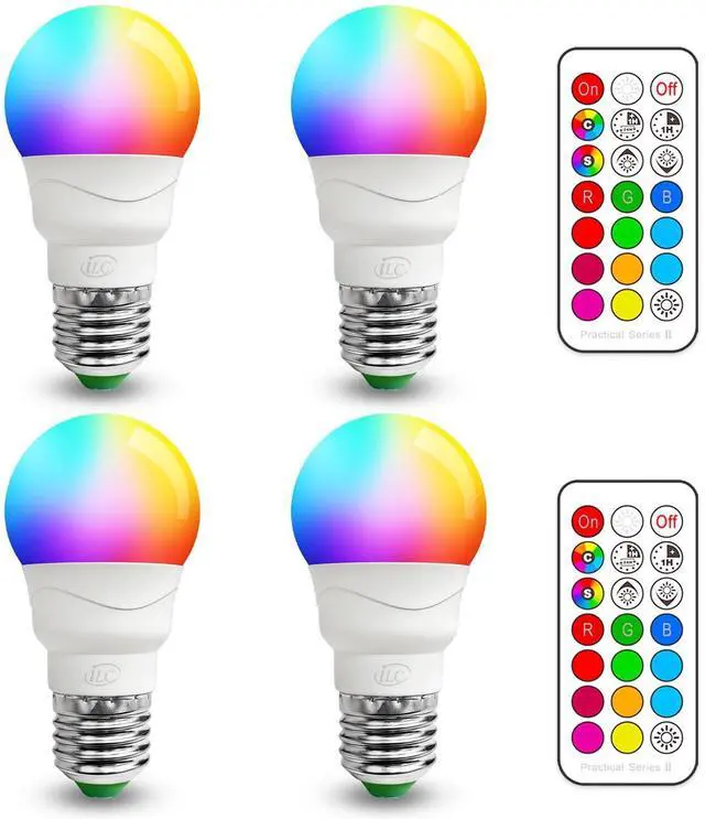 RGB LED Color Changing Light Bulb, 40W Equivalent, 450LM, 2700K Warm White 5W E26 Screw Base RGBW, Flood Light Bulb- 12 Color Choices - Timing Infrared Remote Control (4 Pack)