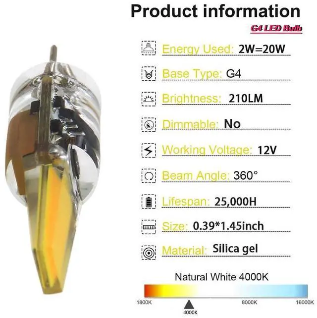 g4 led bulb often used for accent lights, under cabinet puck light, chandeliers, wall mounted sconces, closet lights, floor lamps, table/desk lights, track lighting, and lighting for landscape, rv, caravan, boats, yachts, etc.