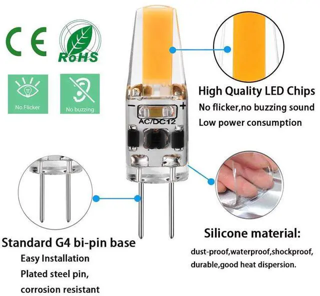 g4 led bulb often used for accent lights, under cabinet puck light, chandeliers, wall mounted sconces, closet lights, floor lamps, table/desk lights, track lighting, and lighting for landscape, rv, caravan, boats, yachts, etc.