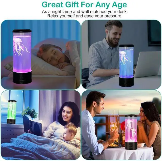 - *Great Relaxation Mood Lamp:Slow change of colors and slow floating jellyfishes are soothing and visually,create a soothing and relaxing environment,which helps clam you down. Realistic jellyfish lamp can be used for night light for kids and adults also,help you to fall asleep. It can be a perfect gift for boys,children,girls or anyone who likes to enjoy the beautiful scenery of the ocean,underwater creatures and marine environment on the desk.