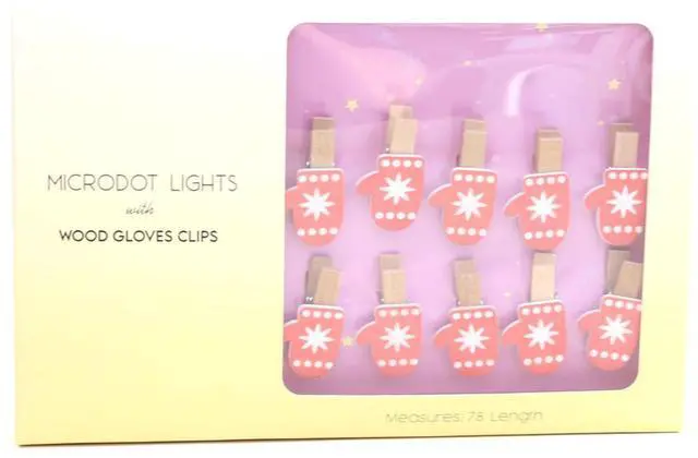 Introducing our 20 LED Copper Wire Microdot Lights, thoughtfully paired with 10 LED Wood Gloves Clips, designed to be the centerpiece of your indoor décor. Battery powered and perfect for special occasions, festive holidays, or enhancing everyday décor.