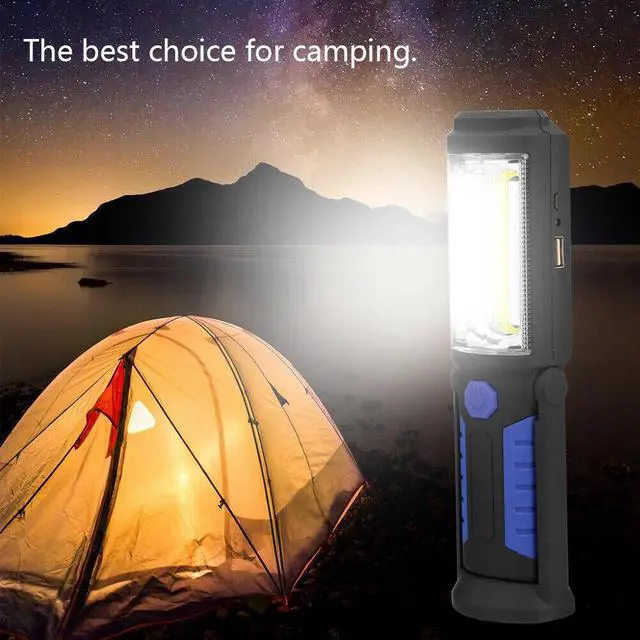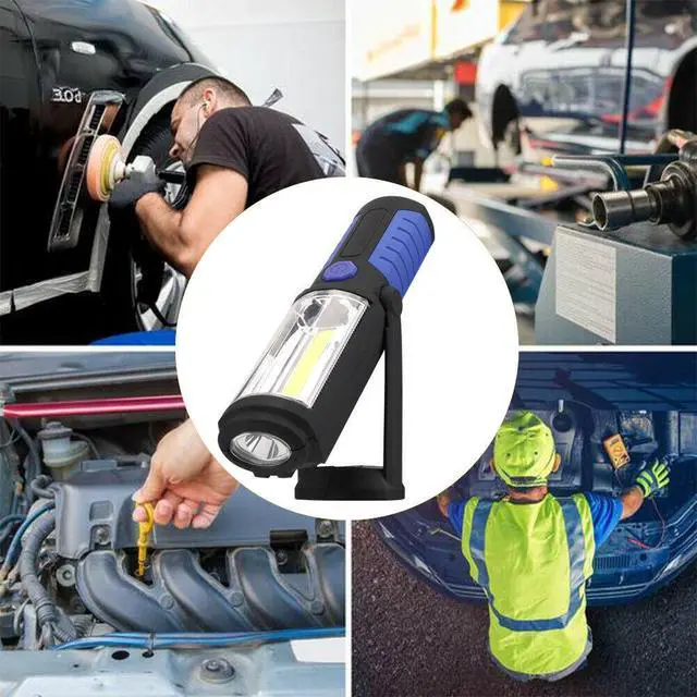 This SOEWIOU handheld work light is equipped with 36+5 high-brightness LED and COB light source, delivering ultra-bright wide-angle lighting for dark environments. Built-in large-capacity rechargeable battery, support convenient USB fast charging, meeting long-time outdoor and work lighting needs. Strong built-in magnet and adjustable bracket design, it can be adsorbed on metal surfaces or placed stably for hands-free use. Portable handheld design, lightweight and anti-slip, easy to carry for car maintenance, emergency rescue, outdoor camping and household power failure lighting. Multiple lighting modes optional, energy-saving and durable, waterproof and drop-resistant, a practical multi-scene emergency lighting tool.