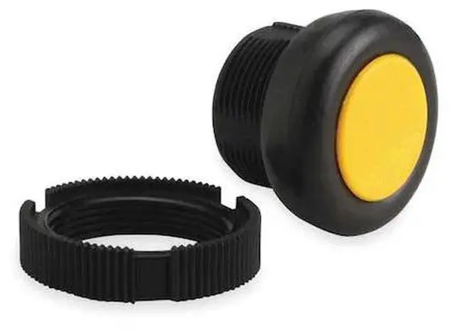 Flush Push Button, 22 mm, Momentary, Type of Operator Booted Button, Basic Material Plastic, Head Material Plastic, Bezel Material Plastic, Color Yellow, IP Rating IP65, Legend Not Applicable, Standards Class II IEC 61140, CSA C 22.2 No. 14, EN 50102, EN/IEC 60204-32, EN/IEC 60947-5-1, IEC 60068-2-27, IEC 60068-2-6, IEC 60529, REACH Free of SVHC, RoHS, UL 508, Features Visually Distinct at a Distance, Snap-Fit Assembly