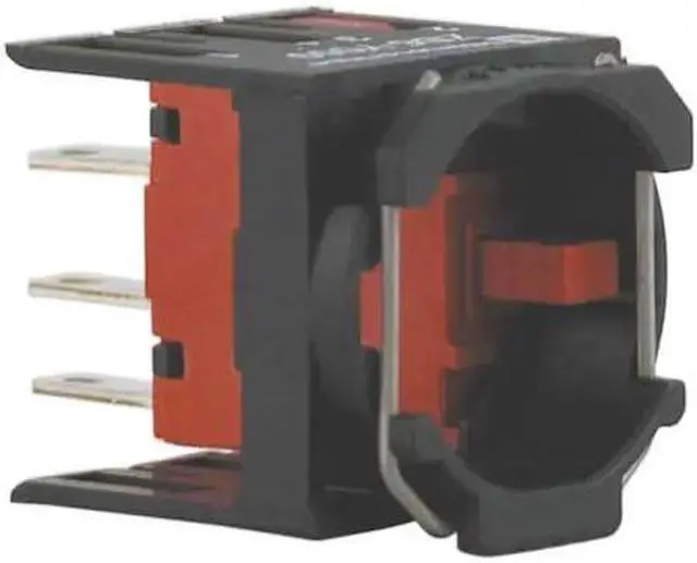 Contact Block, Contact Form 1NC, Contact Rating 6A @ 250V AC, For Use With Schneider 16mm Push Buttons, Action Momentary, 16 mm, Application Operator, NEMA Contact Rating Designation B300/R300, Color Black, Terminal Connection Slip On or Faston Connector or Quick Connector, Standards CSA C 22.2 No. 14, EN/IEC 60947-1, EN/IEC 60947-5-1, EN/IEC 60947-5-5, JIS C4520, JIS C852, UL 508
