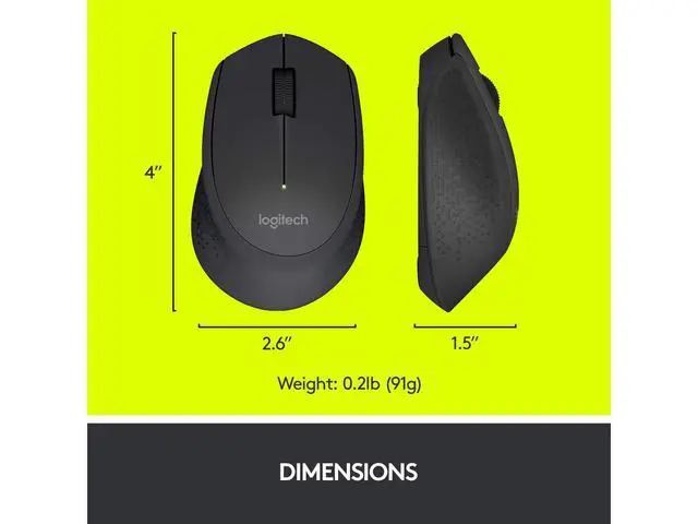 Logitech M330 Silent Plus Wireless Mouse – Enjoy Same Click Feel with 90% Less Click Noise, 2 Year Battery Life, Ergonomic Right-Hand Shape for Computers and Laptops, USB Unifying Receiver, Black